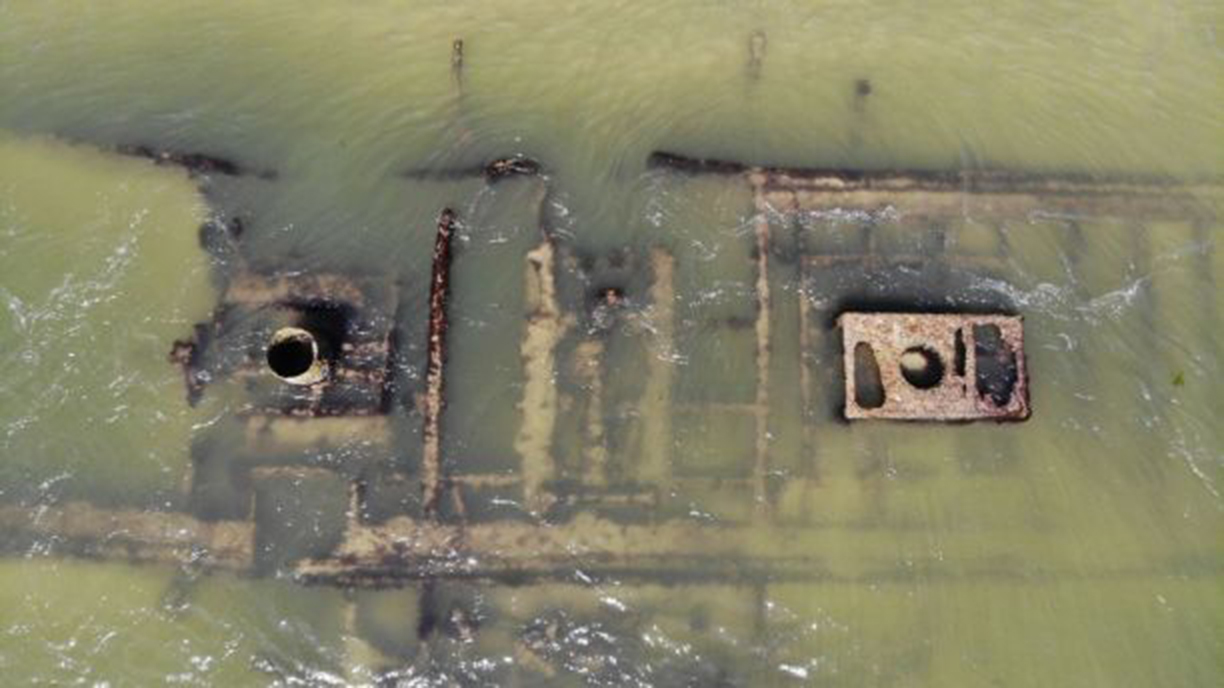Experts believe the vessel is a large iron-hulled Civil War-era steamer. In the video, you can see the vessel is partially submerged in the ocean.