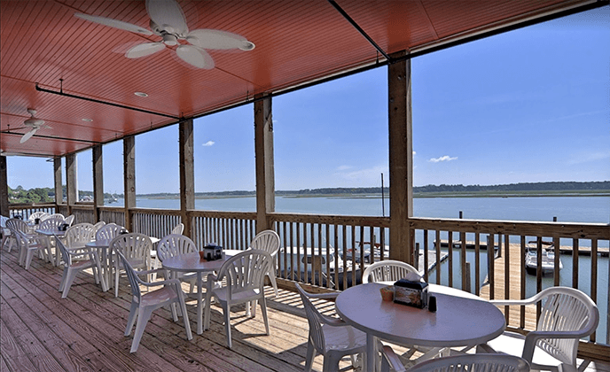 Enjoy Breakfast, Lunch and Dinner. Our Breakfast Menu includes all of your morning classics. For lunch and dinner, we have something for everyone: salads, sandwiches, appetizers, burgers, wings and of course lots and lots of fresh seafood. Enjoy a cocktail in our full-service bar. We offer spectacular views of the Shallotte River, IntraCoastal Waterway and Atlantic Ocean.