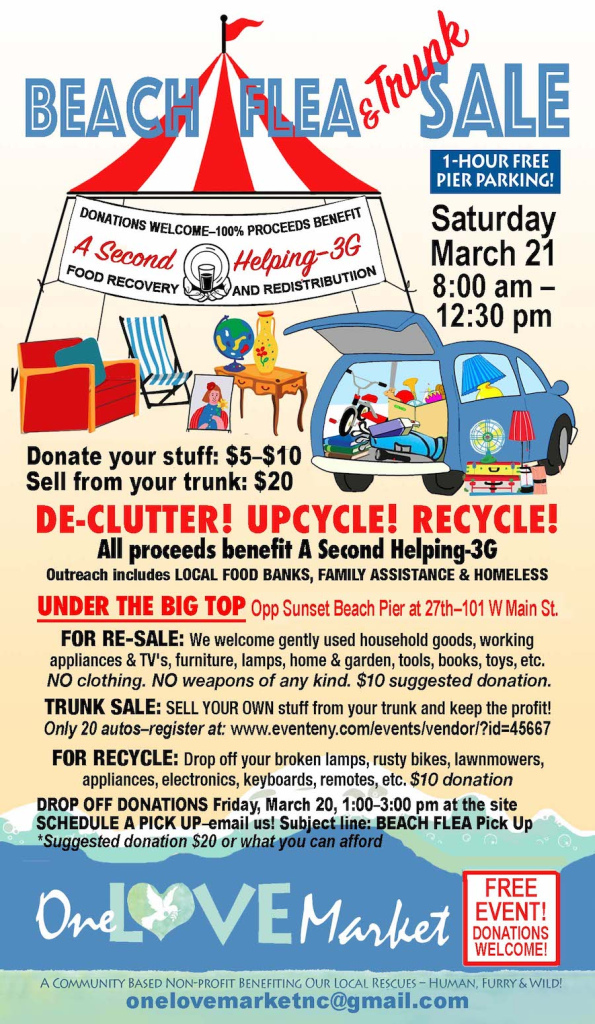 For more information – email: onelovemarketnc@gmail.com or text to Janet for Beach Flea – 910-880-3163